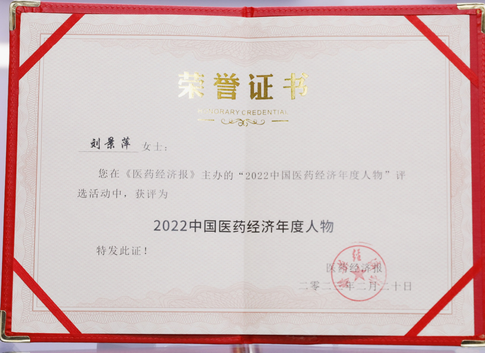 AG贵宾会药业集团董事长刘景萍当选“2022中国医药经济年度人物”