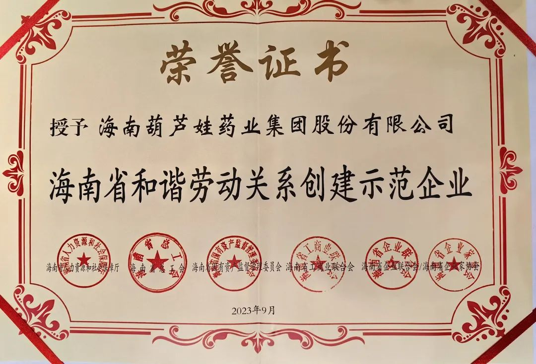 AG贵宾会药业集团获评“海南省和谐劳动关系创建示范企业”